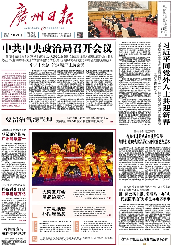 广州日报 头版 A1 2025-01-211 2025年01月21日 星期二