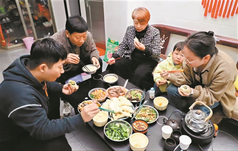 随着热气腾腾的包子和一盘盘美味佳肴端上桌,大家有说有笑,欢乐氛围更加浓厚。“过几天,远在上海工作的女儿也会过来麻涌团聚。”杜复员开心地说,“只要我们全家老小一起热热闹闹、平平安安,我心里就特别满足。”