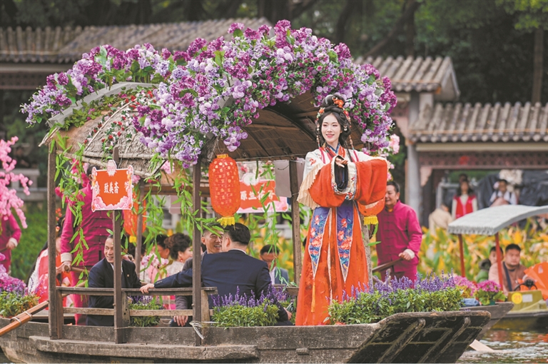 漫步花市和广府庙会,会发现不少市民游客都会拿起手机直播,不少主播都身着汉服或者马面裙。近两年,“新中式”等充满国潮风的穿搭在传统花市和广府庙会上随处可见,这种既保留传统元素又融入现代设计理念的“新中式”服饰服装在年轻人中掀起了一股新的潮流。今年的西湖花市还将有汉服展示打卡、花仙子巡游等系列文化活动,相信会成为今年花市的一道亮丽风景。