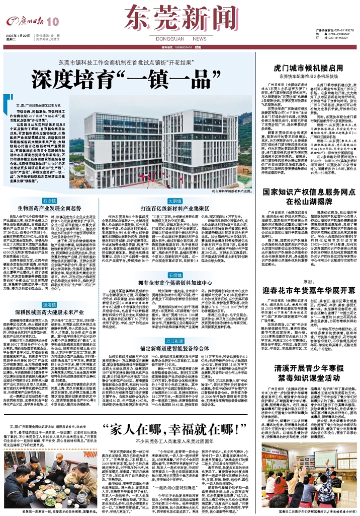 - 深度培育“一镇一品” 文、图/广州日报全媒体记者马骏 市镇会商、园镇联动,市镇科技工作会商机制(以下简称“市镇会商”)在首批试点镇街“开花结果”。 记者近日从东莞科学技术局及5个试点镇街了解到,自市镇会商启动以