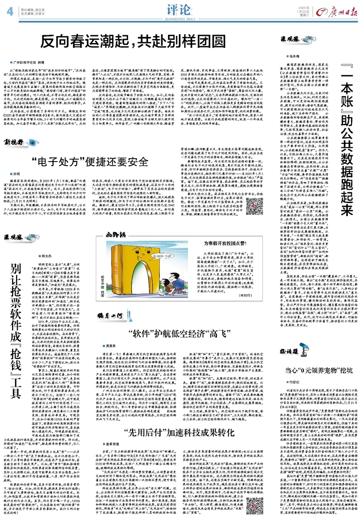 - 反向春运潮起,共赴别样团圆 广州日报评论员 杨博 从“有钱没钱回家过年”到“我来到你的城市”,“反向春运”正在90亿人次的跨区域流动中掀起新风潮。 所谓反向春运,是指一反子女年节返乡探亲的传统习俗,父母利用春运“潮汐