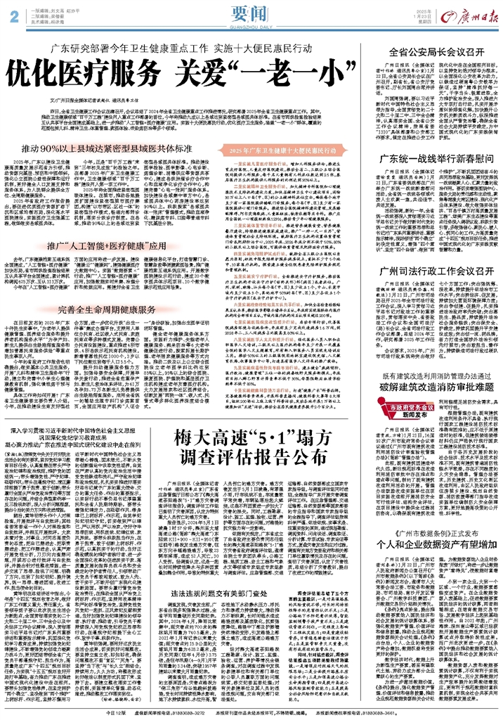 刘国周强调,要以习近平新时代中国特色社会主义思想为指导,全面贯彻党的二十大和二十届二中、三中全会精神,认真落实全国、全省公安工作会议精神,按照省委“1310”具体部署和公安部工作要求,锚定在推进公安工作现代化中走在全国前列目标,以坚持党的绝对领导为根本,以全面深化公安改革为动力,以锻造过硬南粤公安铁军为保证,坚持“精准抓好每一天”,干字当头、锐意进取,全力维护政治安全,深入推进六大专项打击行动,扎实开展矛盾纠纷排查化解,加快提升公安机关新质战斗力,纵深推进全面从严管党治警,确保全省社会大局持续平安稳定,为中国式现代化的广东实践保驾护航。