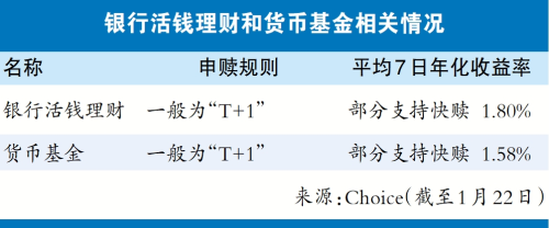 还有值得注意的是,目前多数银行活钱理财和货币基金的申购确认时间为“T+1”,投资者需在1月24日下午3点前买入,春节假期可享收益。