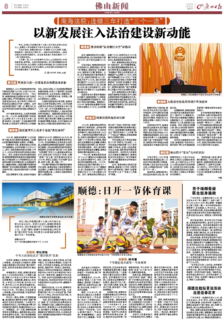 - 以新发展注入法治建设新动能 昨日,在佛山市南海区第十七届人民代表大会第五次会议上,南海区人民法院院长万选才向大会作工作报告。 万选才指出,南海法院过去一年聚焦“公正与效率”主题,持续推动一流的执法办案水平、一流的司法延伸