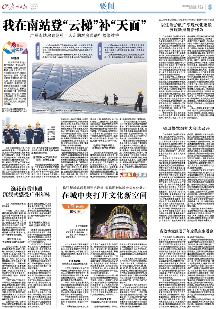 - 我在南站登“云梯”补“天面” 编者按 热火朝天的春运大潮正在进行,春运40天,预计离穗、抵穗人员流动量将达到1.9亿人次。在旅客回家途中,相伴的是火车站、机场、汽车客运站等交通枢纽的工作人员,除了常见的驾驶员、乘务员、