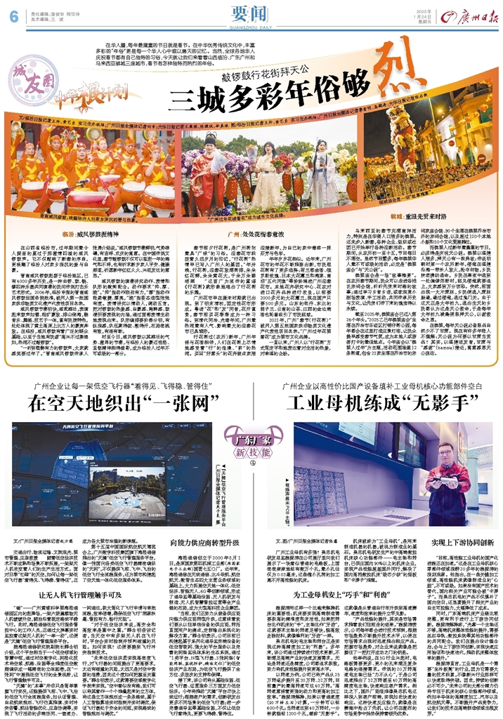 - 在空天地织出“一张网” 文/广州日报全媒体记者赵方圆 交通出行、物流运输、文旅观光、城市管理、应急救援……随着低空经济技术不断成熟和场景不断拓展,一架架无人机改变着人们的生产生活方式。面对日渐“忙碌”的天空,如何