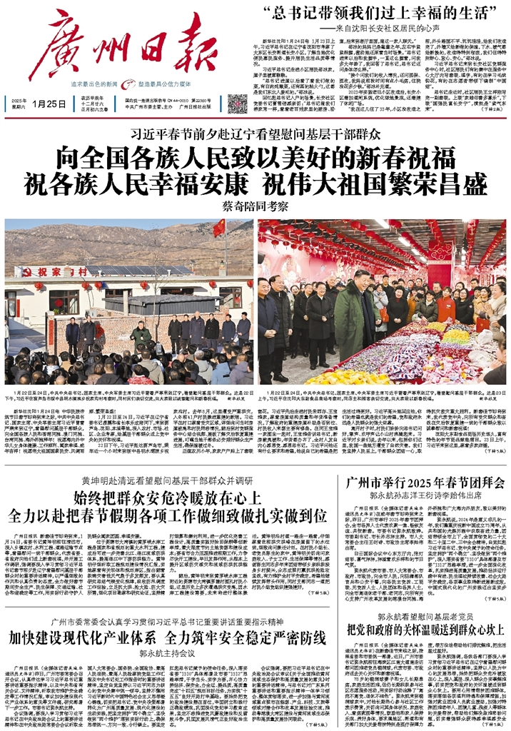 - 始终把群众安危冷暖放在心上全力以赴把春节假期各项工作做细致做扎实做到位 广州日报讯 新春佳节即将到来,1月24日,省委书记黄坤明前往清远市,深入乡镇农村、水利工程、道路运输节点等,看望慰问一线干部群众,代表省委、省政府向他们送上新春祝福,并开展工作调研,强调要深入学习