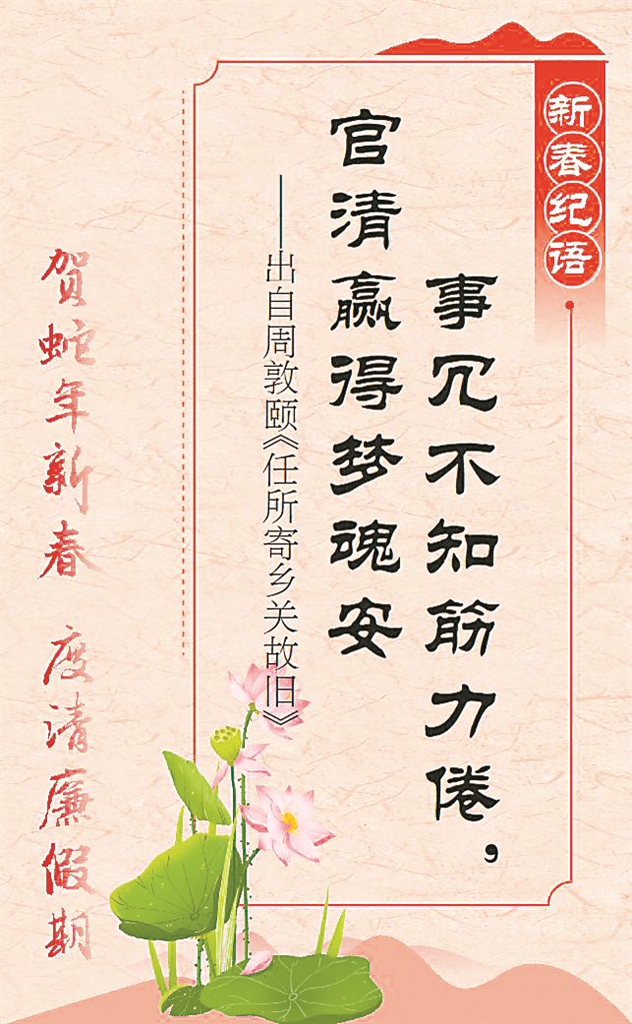 “予独爱莲之出淤泥而不染”。周敦颐的一首《爱莲说》广为世人传诵,素来被作为廉洁奉公的经典之作。其实,在周敦颐一生之中,写下了多首展现自己高风亮节的诗作,其中《任所寄乡关故旧》就是一篇代表作。