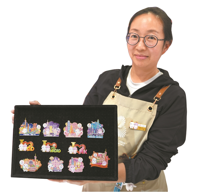 春节期间,十五运会吉祥物闪亮北京路步行街,粤港澳新年主题徽章热销,冰箱贴广受欢迎。
