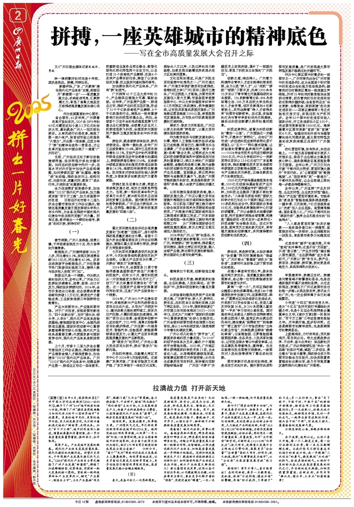 2024年的广州,以“拼”的姿态,书写了高质量发展的新篇章;2025年的广州,将继续以“拼”的精神,推动重大项目建设,服务大湾区协同发展,融入全球产业链,拼出城市发展的新能级、拼出国际化大都市的新气象。