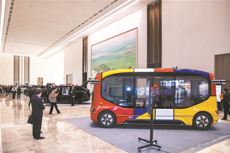 全省高质量发展大会会场外展出的无人驾驶汽车。广州日报全媒体记者苏俊杰、庄小龙 摄
