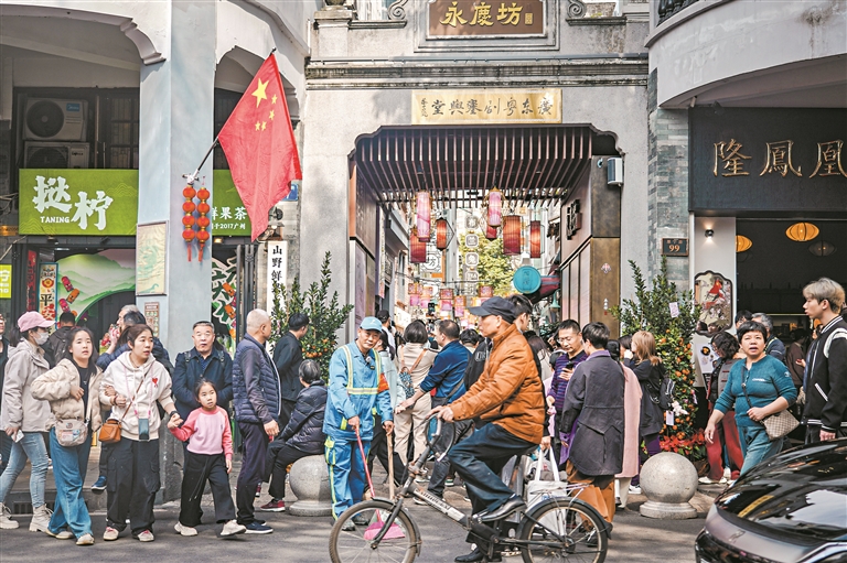 2025年春节假期(1月28日至2月4日),永庆坊接待游客109.85万人次。高人气贯穿全年,2024年,永庆坊到访人次多达2000万,春节、中秋、国庆节假日日均客流超13万人次。