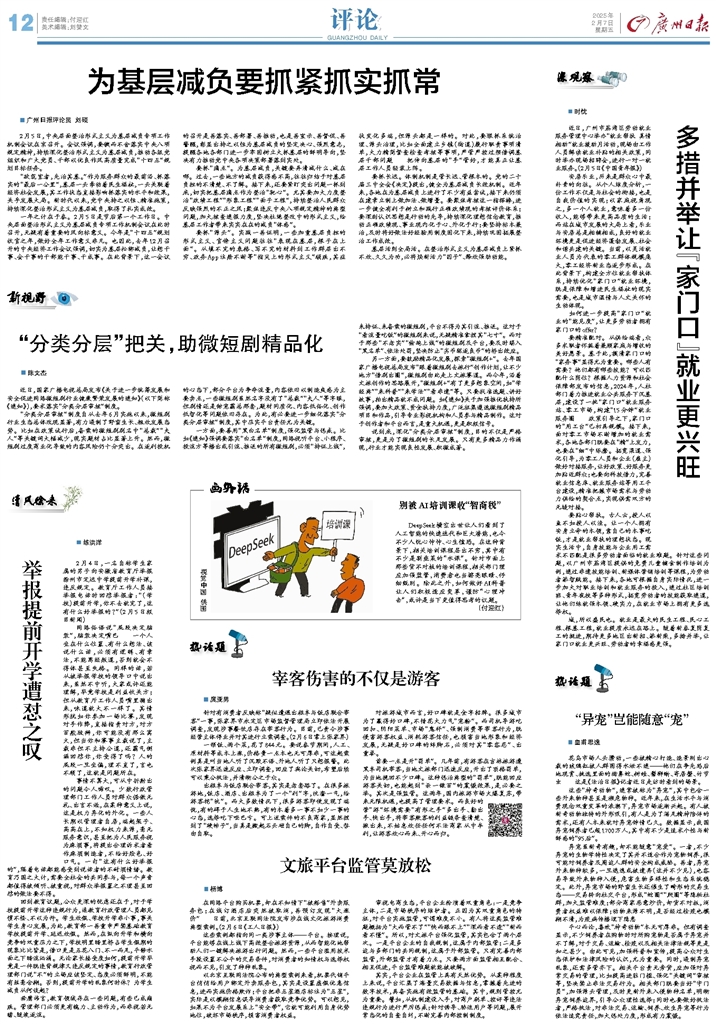 - 为基层减负要抓紧抓实抓常 广州日报评论员 刘硕 2月5日,中央层面整治形式主义为基层减负专项工作机制会议在京召开。会议强调,要锲而不舍落实中央八项规定精神,持续深化整治形式主义为基层减负,推动各级党组织和广大党员、干部
