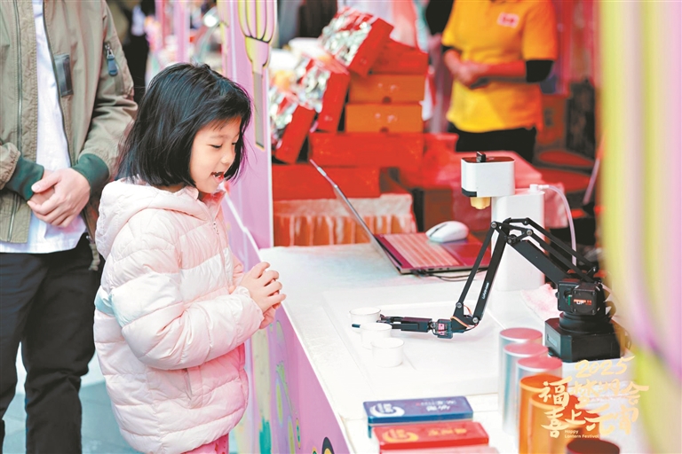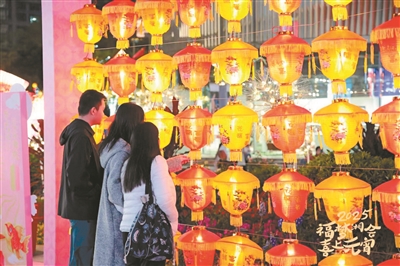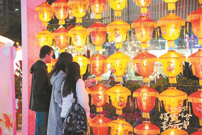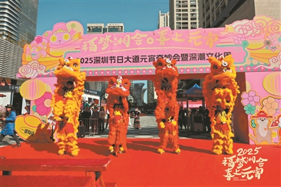 “福梦湘会·喜上元宵”——2025深圳节日大道元宵奇妙会暨深潮文化周近日拉开帷幕。这场融合了深潮文化、非遗技艺和科技魅力的活动在深圳节日大道节日广场(卓悦中心)举办,持续至2月12日。国家级非遗代表性项目坂田永胜堂舞麒麟、上川黄连胜醒狮舞和福田区非遗“李氏花灯”等披红挂彩,喜迎游客。更有潮州的网红“千锤哥”,现场锤打出新鲜潮州牛肉丸,让大家一饱口福。