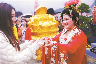 广州日报讯 (全媒体记者谢英君 通讯员郭景祎)为迎接元宵节的到来,让广大市民游客感受精彩与团圆,东莞观音山将于元宵节当天进行民俗展演、“五福”贺新春等系列传统年味互动表演,还结合元宵节的传统和民俗,推出“天官赐福”游园、猜灯谜、品汤圆等精彩内容,诚邀广大市民游客在登高许愿之余,感受传统民俗的欢乐。