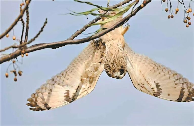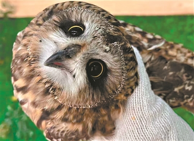 广州日报讯 (全媒体记者马骏 通讯员松湖、松自然摄影报道)记者昨日从东莞松山湖高新区了解到,本月8日在松山湖寒溪河青鹤湾湿地,一只被困在树上的短耳鸮在众人的帮助下,被成功救了下来。