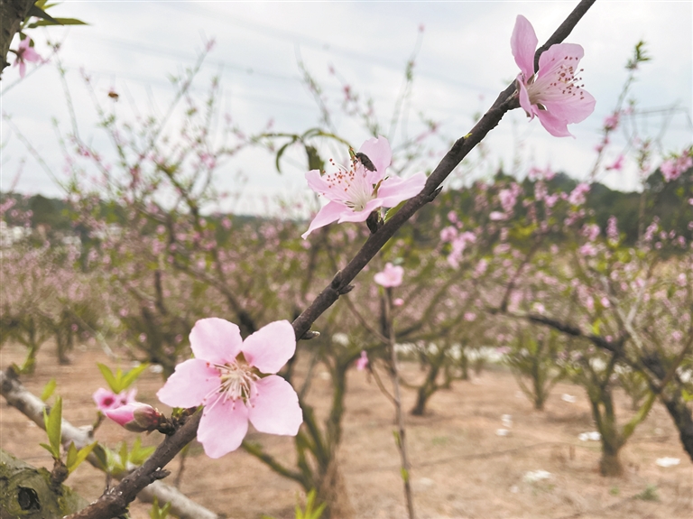 位于花都区狮岭镇联星村的叶海生态园千亩桃园里桃花正迎风盛放。附近还有马岭观花植物园和稻田里景点可游玩,以及众多美味的农家乐可品尝。