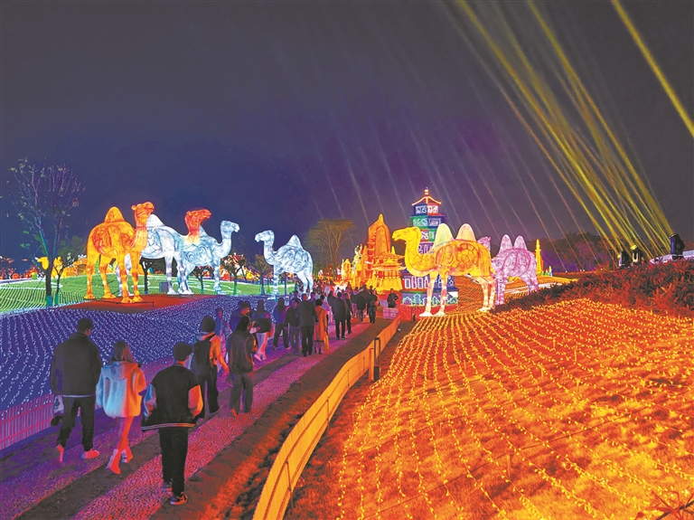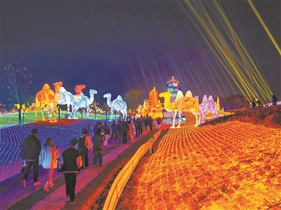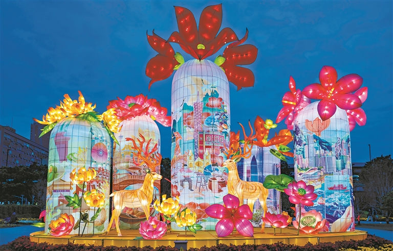 今年,2025年粤港澳大湾区灯会更是盛大。在广州南沙区,在南沙蒲洲花园、南沙天后宫景区、南沙滨海公园等三个园区,218组灯景,超过10000盏彩灯,沿着超过3公里的主游线路铺设开来,构成了目前国内规模最大、灯组最多、展期最长的“超级灯会”。华灯初上,璀璨星河映照湾区。“现实版的国色芳华!”有市民如此点赞。