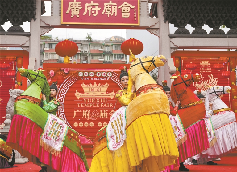 除了灯会,元宵节逛广府庙会成为广州的新民俗。2011年,越秀区首届“广府庙会”在城隍庙盛大开锣,历经十多年的发展,广州的传统中轴线上,广府元宵增添了新的元素。