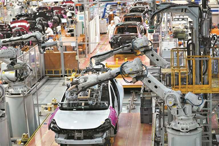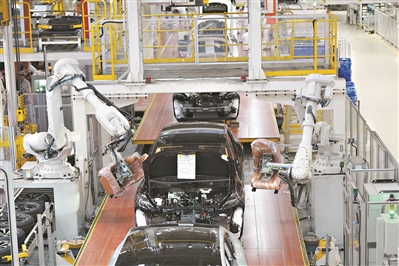 在总装车间,汽车会经历200多个加工工位(站点),其中很多站点都实现了无人化、全机器人操作。