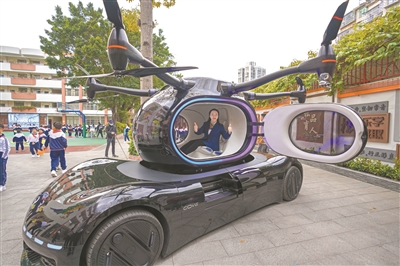 “欢迎新年师生返校,祝时来运转,事事如意,加油!”当天一早,校门口的人形机器人为同学们带来开学祝福。作为活动亮点之一,广汽研究院研发的飞行汽车首次亮相校园,引发学生热烈围观。四年级学生陈炜谦在体验后兴奋地表示:“座位比想象中宽敞,操控平台充满科技感。”他说,这次体验颠覆了他对未来交通工具的认知。