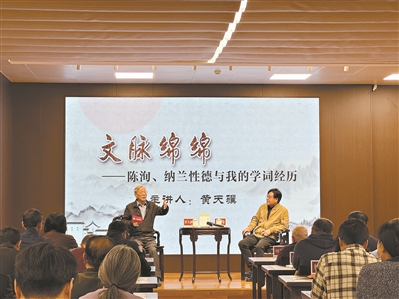 作为本次活动的重要环节,“广雅讲坛”于活动当天正式开讲。中山大学中文系教授、《广雅》顾问黄天骥以“文脉绵绵——陈洵、纳兰性德与我的学词经历”为题,结合自身学术生涯,讲述了其自身堪称戏剧性的学词经历。