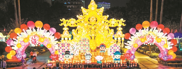“幸福羊城新活力”。2月11日晚,位于荔湾区的广州文化公园2025年元宵灯会正式亮灯,灯会一直持续至2月13日,免费对广大市民游客开放。作为广州文化公园“迎春花会”的压轴重头戏,本次“元宵灯会”采用精湛的岭南本土彩灯制作工艺,融入丰富的岭南文化元素,并将彩灯融入年花造景,春花灯彩共生辉,让市民游客感受最传统、最接地气的岭南灯会魅力。