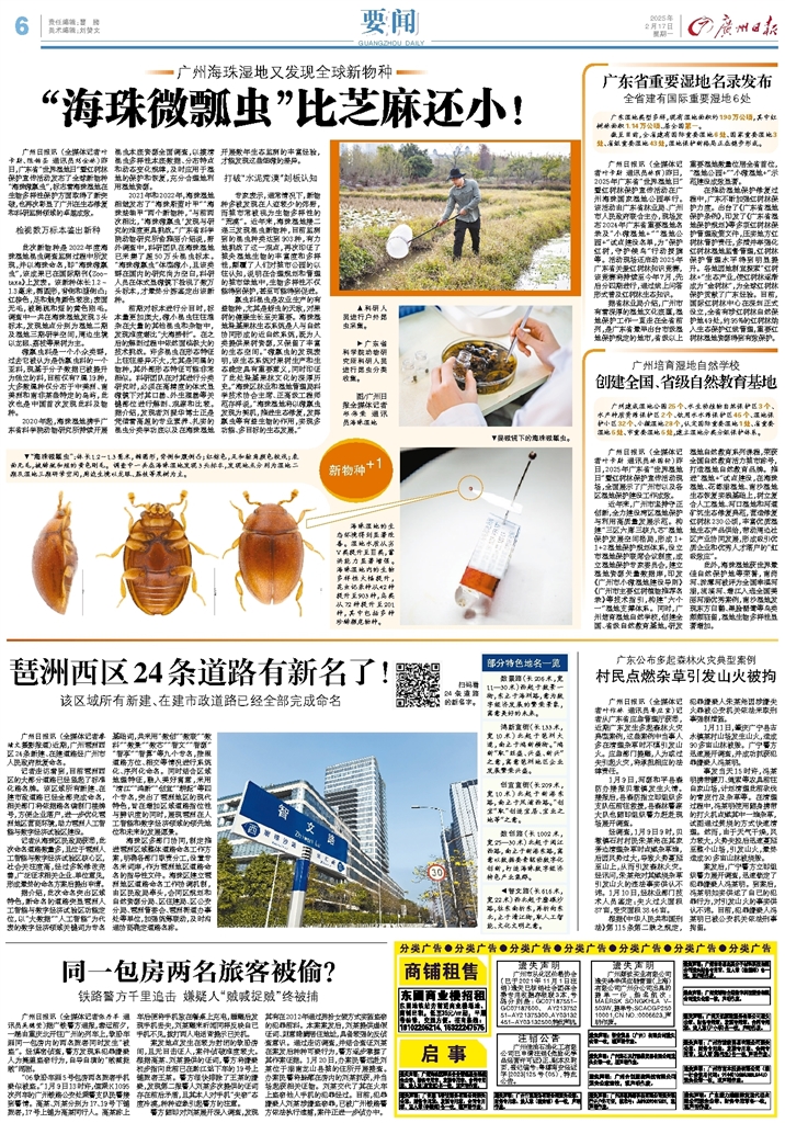 - “海珠微瓢虫”比芝麻还小! 广州日报讯 (全媒体记者叶卡斯、陈钧圣 通讯员刘金林)昨日,广东省“世界湿地日”暨红树林保护宣传活动发布了全球新物种“海珠微瓢虫”,标志着海珠湿地在生物多样性保护方面取得了新突破,也再次彰显了广