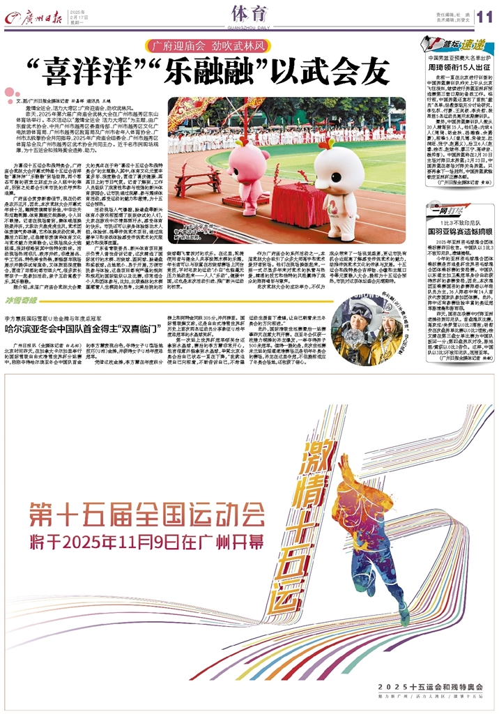 - “喜洋洋”“乐融融”以武会友 文、图/广州日报全媒体记者 孙嘉晖 通讯员 王越 激情全运会,活力大湾区;广府迎庙会,劲吹武林风。 昨天,2025年第六届广府庙会武林大会在广州市越秀区东山体育场举行。本次活动以“激情全运