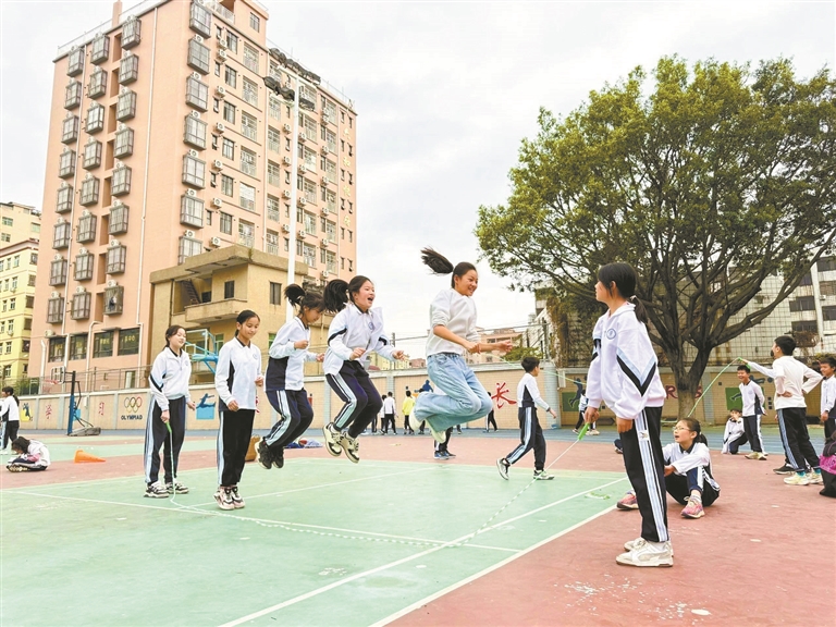 新学期开学后,东莞中小学有的课间休息时间变成15分钟了,有的每天都开设一节体育课,让孩子们有更多的时间走出教室,享受阳光和运动的快乐。