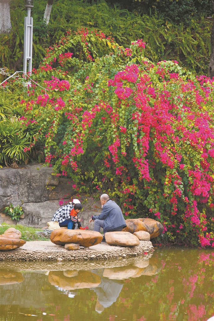 观赏地点:东莞人民公园各处都有三角梅的身影,尤其是在醒莞、晓湖和绿道两旁。
