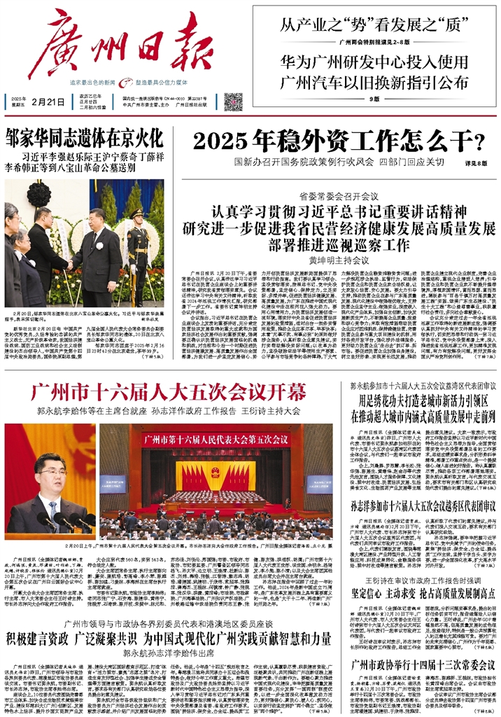 - 广州市十六届人大五次会议开幕 广州日报讯 (全媒体记者魏丽娜、贾政、何瑞琪、黄岚、邓潇丽、叶作林、丁雄、赵越、许晓芳、程依伦 通讯员穗仁宣)2月20日上午,广州市第十六届人民代表大会第五次会议在广州白云国际会议中心开幕。