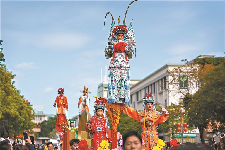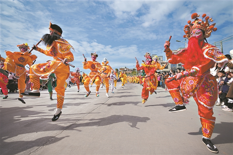 春节期间,惠来县惠城镇热闹非凡。《迎春醒狮》《金龙呈祥》《潮汕英歌》《潮起葵阳》《威风锣鼓》……充满地方特色民俗元素的春节文艺游演活动连续数日上演,为广大市民带来了一场精彩纷呈的新春文化盛宴。