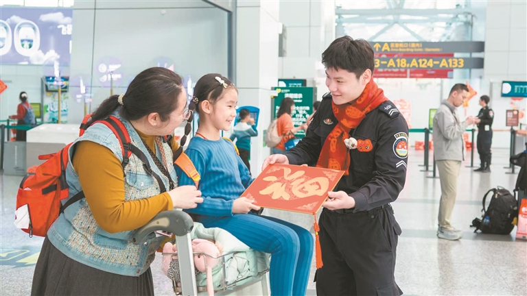 广州日报讯 (全媒体记者李妍 通讯员机场宣摄影报道)2月22日,为期40天的2025年春运圆满收官。春运期间,广州白云机场以全新的服务理念、丰富的文化活动和温馨的出行体验,打造了一场“不一样”的春运,保障了广大旅客平安、便捷、温馨出行。这场春运不仅充满了浓浓的年味,更展现了智慧化服务以及民航人满满的人情味。白云机场在服务品质上也取得了显著成效。为了让广大旅客感受到浓厚的春节气氛,白云机场策划了系列充满“中国风”与“广府味”的文化活动。