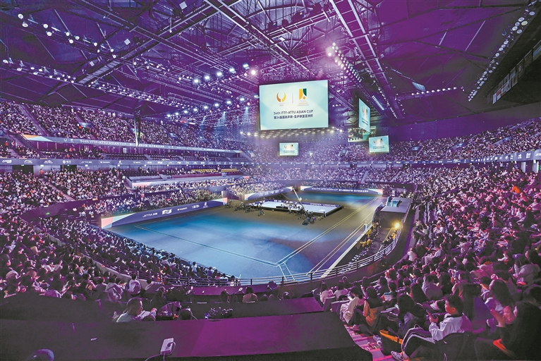 大运天地中央广场在比赛期间变身亚洲杯公园,设有第二现场直播区、官方特许商品区、非遗手作区、公园市集、互动游戏打卡点等,成为广大球迷在观赛之余进一步了解乒乓球文化的好去处。