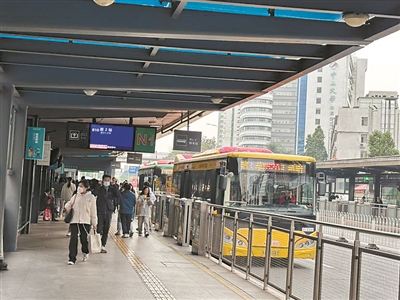 昨日,记者在BRT岗顶站看到,车站人流量较大,但并不拥挤,进出站人流有序。乘坐B10路的李先生告诉记者,早晚高峰乘车人比较多:“挤一挤,一趟也能上得去。”记者看到,8时50分左右,经过的一些BRT车内人不多,甚至偶有车辆还有空座,乘客在岗顶站到站下车后车内更加空旷。也有部分BRT车辆人数较多,车内乘客排队到前车门。在天朗明居站乘车的市民王小姐表示,有很多人选择乘BRT出行:“在早高峰,有时候两三趟都挤不上车。”