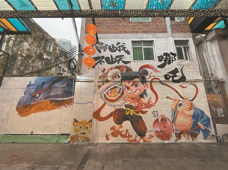 “哪吒”系列墙绘,让原本默默无闻的街巷摇身一变成为打卡新地标。“一面涂鸦墙带火一条街。”有市民感叹,“这些涂鸦、彩绘很有意思,体现了我们这个城市的活力和创意。”