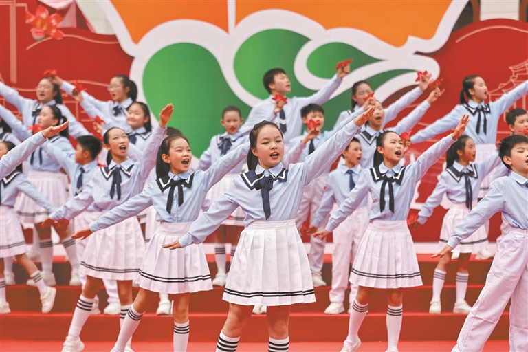 英雄花开英雄城,青春激扬向未来。展演中,来自福建龙岩的傅米乐同学与广州学生代表一起,生动讲述令人荡气回肠的英雄故事。“来到广州,看到满街火红的木棉花,太漂亮了!”傅米乐感慨。