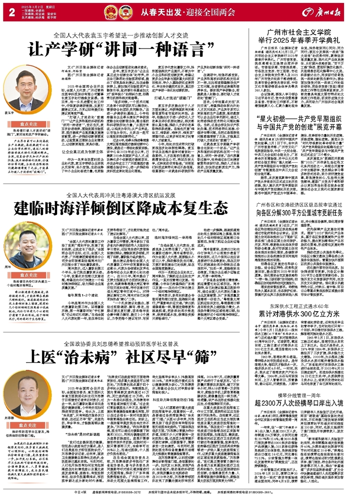 - 上医“治未病” 社区尽早“筛” 文/广州日报全媒体记者苏赞 图/广州日报全媒体记者莫伟浓 2025年全国两会召开在即,全国政协委员、南方医科大学南方医院消化科主任刘思德于日前接受记者采访时表示,过去一年,自己履职的重点依