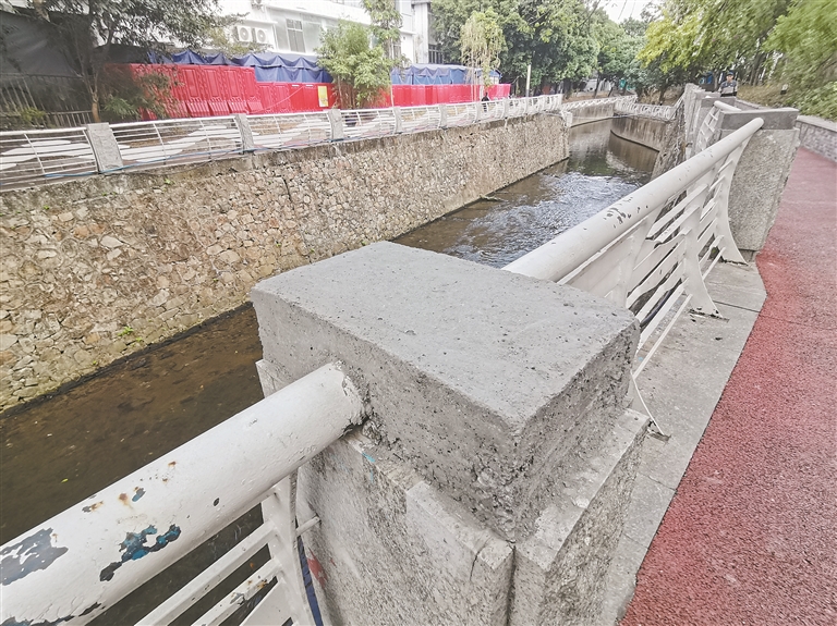 此前,碧道存在部分立柱瓷开裂、护栏油漆脱落起皮、桌凳脱胶等问题……街坊期盼早日完成整改。周边市民曹先生、马先生表示,他们常看到工作人员对碧道进行巡逻、打扫等,还曾对护栏涂抹保护漆。街道工作人员表示,街道已在巡查中发现问题并上报,“立柱、护栏的修补,争取15天左右完成整改。”半个月后,街道工作人员告诉记者,河涌碧道已基本完成管养整改。其间,街道定期安排10余名工作人员分组开展管养工作,一组负责绿化带修剪,包括清除绿化带、河涌挡土墙的杂树,另一组负责立柱、护栏等的修护。