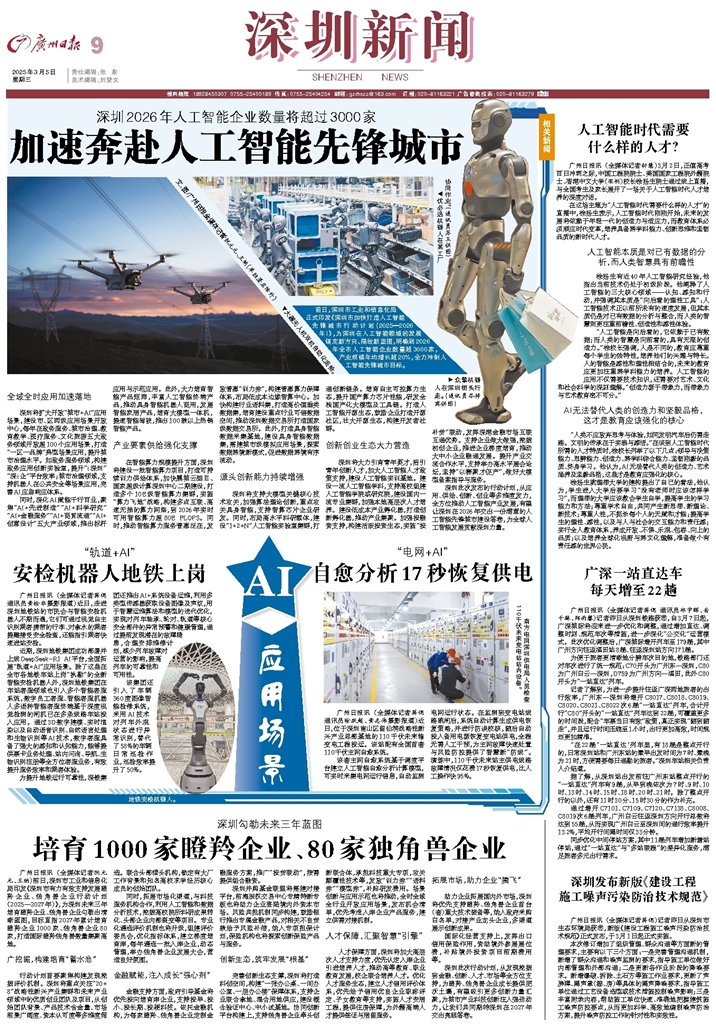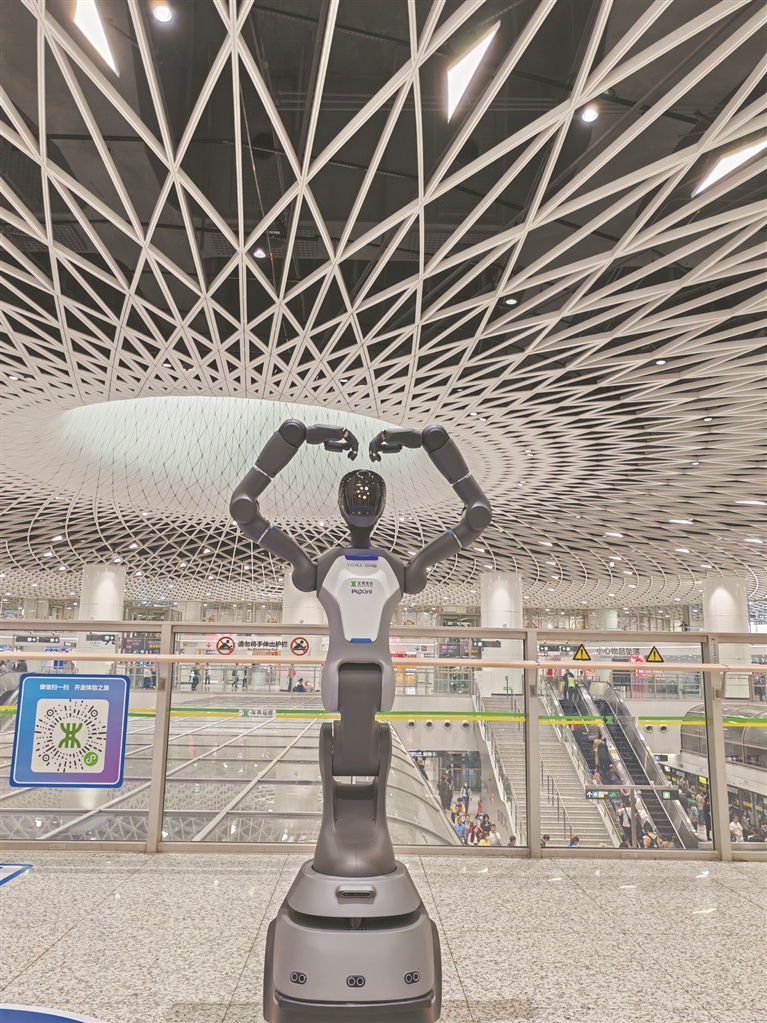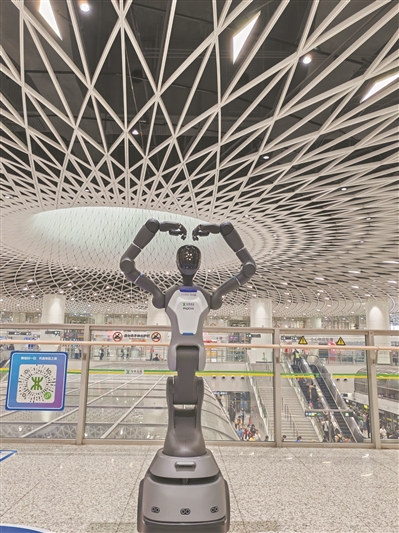 广州日报讯 (全媒体记者蒋偲 通讯员黄检华摄影报道)近日,走进深圳地铁站的市民会与智能安检机器人不期而遇,它们可通过视觉自主识别乘客携带的行李、对拿水的乘客提醒接受安全检查,还能指引乘客快速进站安检。