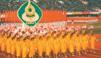 1987年11月20日,天河体育中心欢声雷动,开幕式上演出了由1.4万人参演的大型团体操《凌云志》,广东运动员、世界跳水冠军谭良德点燃大会火炬。四面八方的群众涌进天河体育中心,共同见证六运会开幕式。