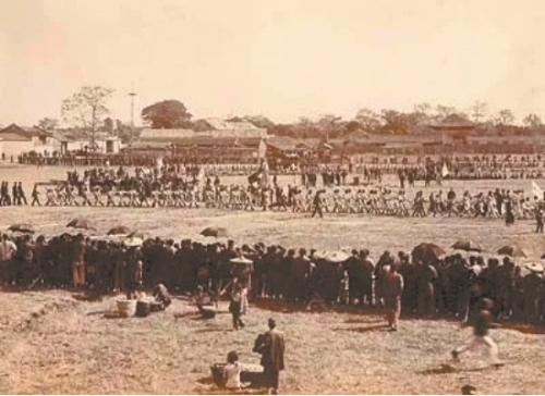 东较场何去何从?作为近现代中西文化最早的交汇地之一,广州领风气之先,现代体育运动以不同的形式登陆这里。彼时,沙面建有全国最早的室内游泳池以及广州最早的网球场。与此同时,有识之士纷纷兴办学堂,开设体育课,真光、培英、格致等书院还聘请有外籍体育教师,学校运动会也引入田径项目。在这个背景下,1906年,东较场易名为“广东省运动场”,举办了首届“广东省大运动会”。