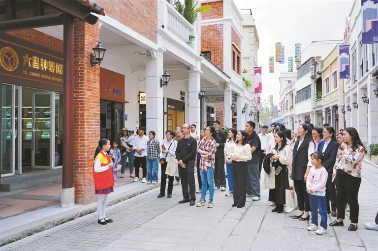 经过2个多月的认真筹备,东莞记忆导赏志愿服务项目的首批志愿导赏员近日正式上岗。来自莞城阮涌小学的小小志愿者身着志愿者马甲,带领前来参观的市民群众漫步东莞记忆首开区骑楼街区,用稚嫩却饱含热情的声音,为大家详细讲解街区的文化特色和历史故事。从“一街、一河、一园”的独特布局,到骑楼街的百年变迁;从灰塑、满洲窗等传统建筑元素的精妙之处,到老字号店铺的岁月……每一个细节都饱含着东莞文化的独特魅力。每一段讲解都传递着志愿导赏员们对家乡的热爱与自豪。
