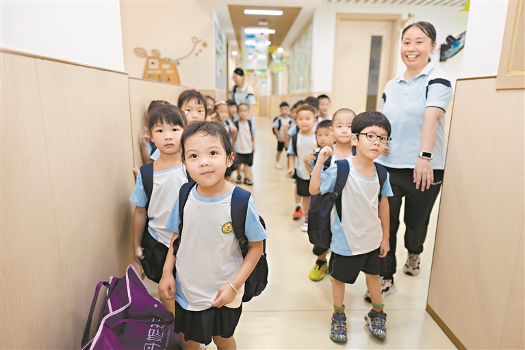 在挑选幼儿园时,马晓飞很看重幼儿园教师的专业能力,目前孩子所就读的荔湾区楠熙西湾路幼儿园,也是在对比尝试了几家幼儿园之后才定了下来。因此,她认为,在推进普惠免费的同时,也要保留家长选择不同幼儿园的权利,满足差异化需求,只有教师、家长和社会多方协作,才能为幼儿构建一个身心全面发展的成长环境。