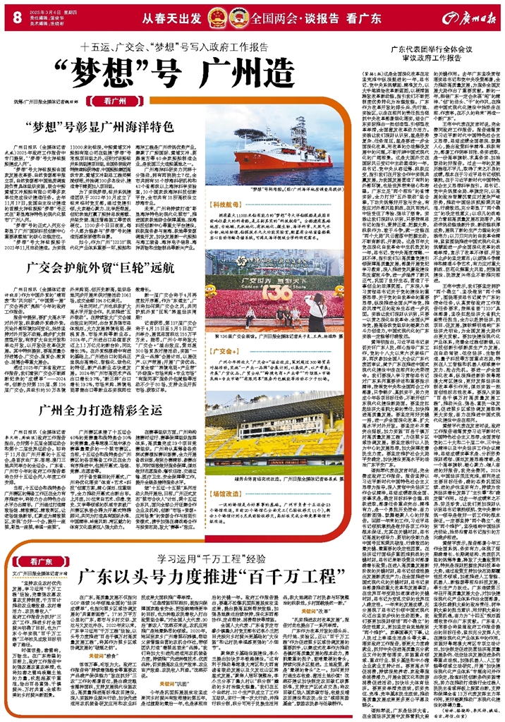 - “梦想”号 广州造 看广州 统筹/广州日报全媒体记者魏丽娜 “梦想”号彰显广州海洋特色 广州日报讯 (全媒体记者武威)2025年政府工作报告中专门提到,“‘梦想’号大洋钻探船建成入列”。 “梦想”号大
