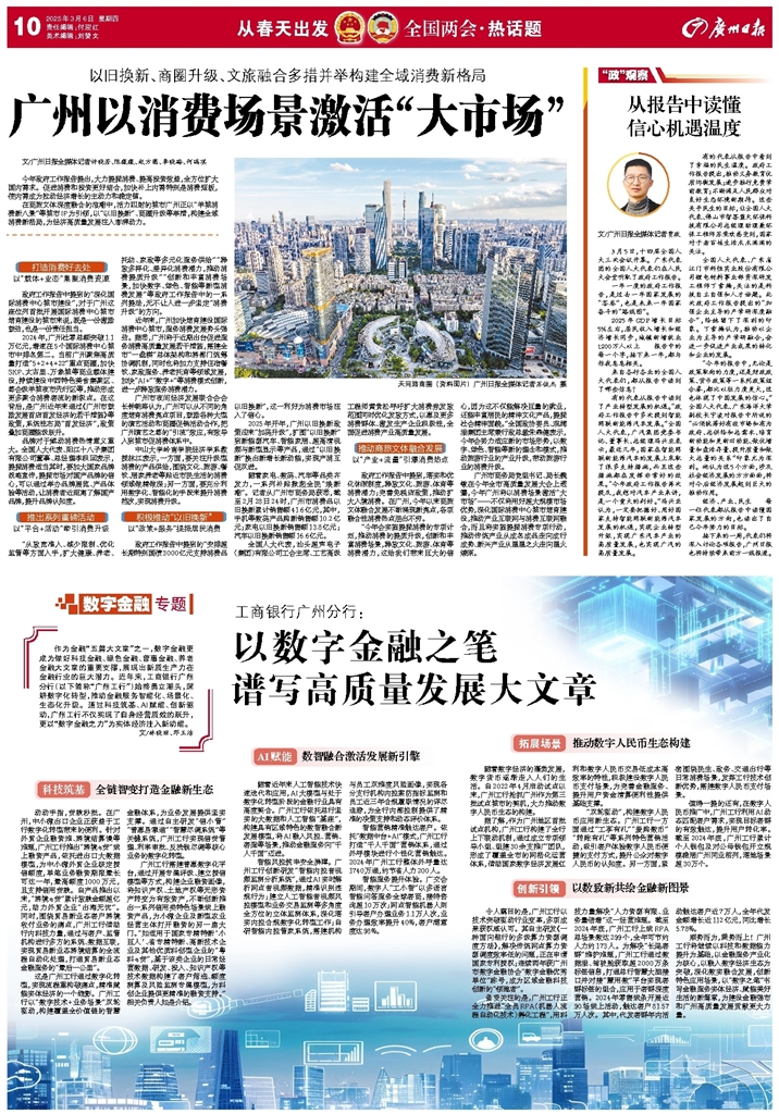 - 广州以消费场景激活“大市场” 文/广州日报全媒体记者许晓芳、陈薇薇、赵方圆、李晓璐、何瑞琪 今年政府工作报告提出,大力提振消费、提高投资效益,全方位扩大国内需求。促进消费和投资更好结合,加快补上内需特别是消费短板,使内需成