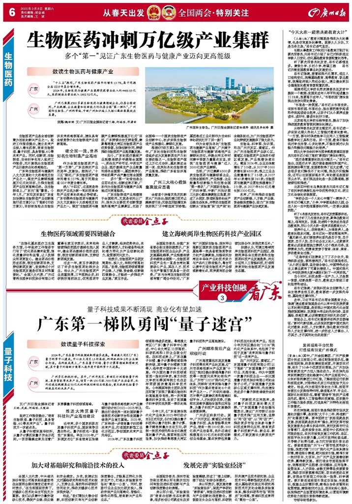 - 广东第一梯队勇闯“量子迷宫” 量子科技 文/广州日报全媒体记者王纳、武威、何瑞琪、王楚涵 政府工作报告提出,“培育生物制造、量子科技、具身智能、6G等未来产业”。量子科技又一次被点名。 从量子纠错到超导材料