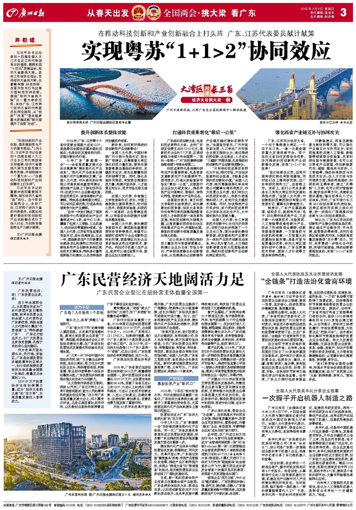 广东以深化改革,帮助企业“办成事”。在实现高水平科技自立自强、推动高质量发展中,民营企业可发挥所长、蓄势扬帆,向着“链主”企业、单项冠军、专精特新企业的“成长目标”奋力前行。
