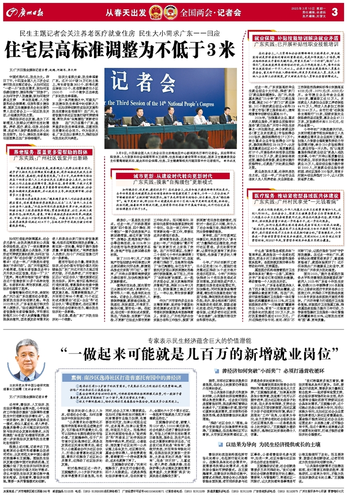 - 住宅层高标准调整为不低于3米 文/广州日报全媒体记者苏赞、赵越、何颖思、李天研 中国式现代化,民生为大。昨日下午,十四届全国人大三次会议举行民生主题记者会。从如何回应“一老一小”的民生需求,到如何坚决稳住楼市、建设和推